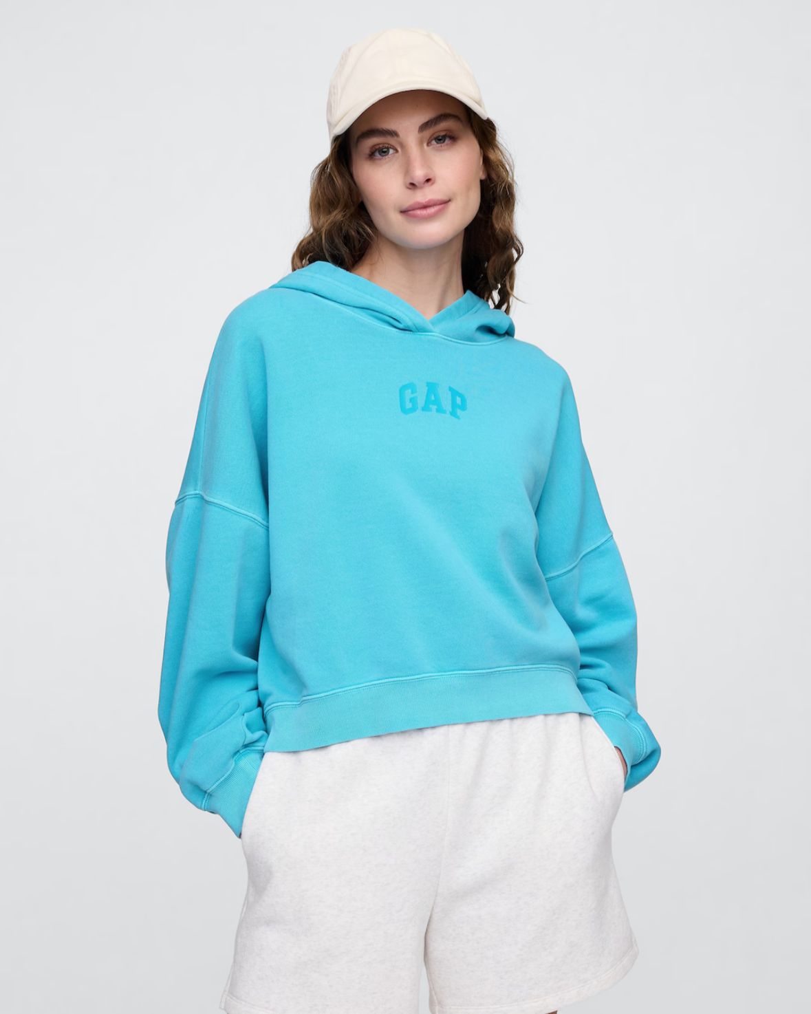 Polerón Gap Relaxed Mini-Logo Cropped Hoddie - Aquarius Blue