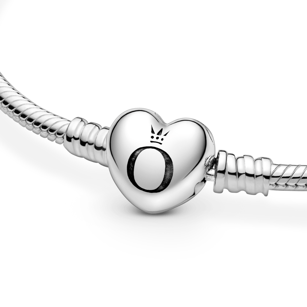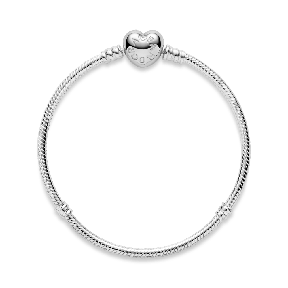 Dale un vuelco a tu corazón con esta versión romántica del clásico brazalete con dijes de Pandora. Acabado a mano con un cierre en forma de corazón, este brazalete de cadena de serpiente de plata esterlina se ve impresionante por sí mismo, pero aún mejor adornado con sus charms y clips favoritos de Pandora. Póngalo en capas con las pulseras de cadena Pandora en contraste para una apariencia elegante y de múltiples capas.